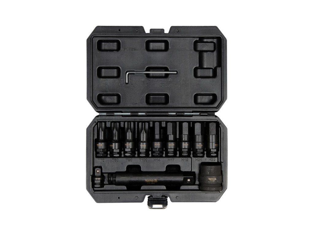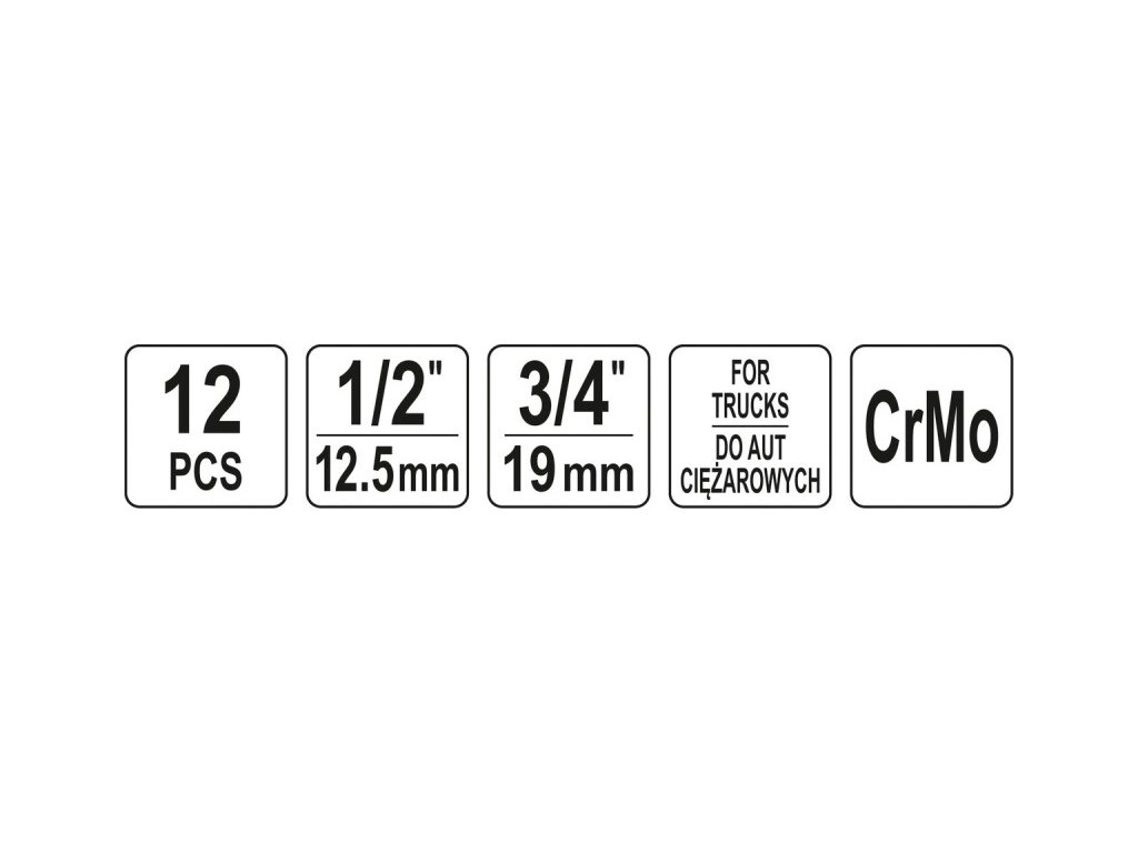 Sada nástrčných kľúčov YATO Machine s dlhými bitmi 12-dielna Torx a Allen 1/2, 3/4 nákladné auto CrMo