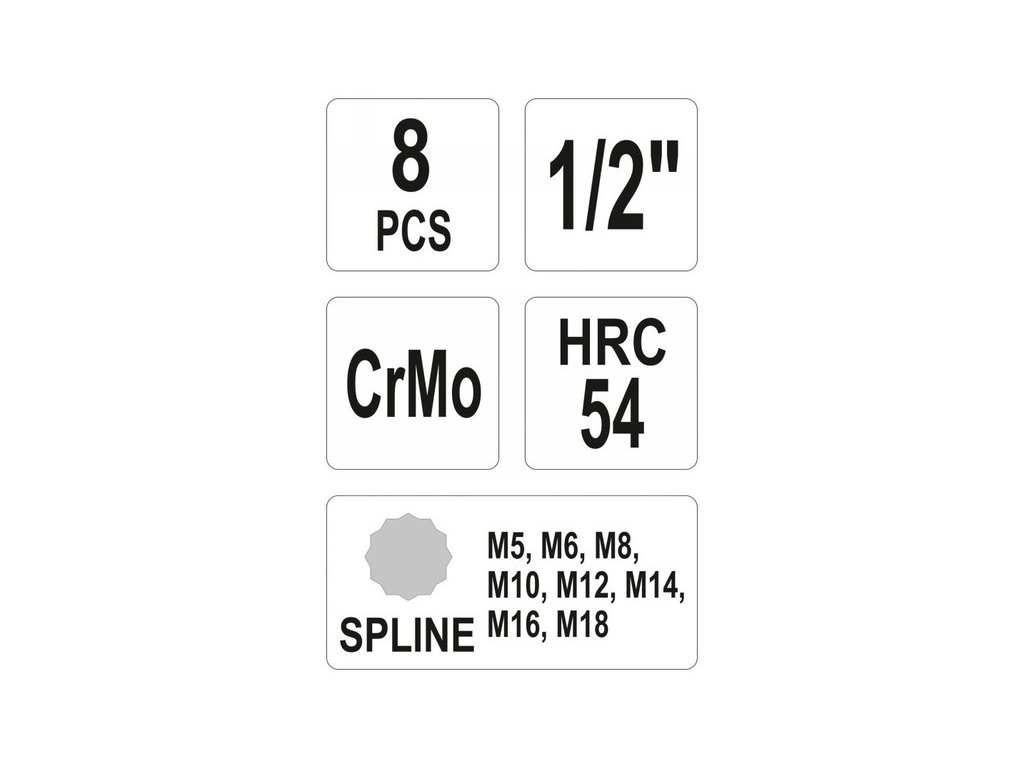 Sada nástrčných kľúčov 1/2” Spline, 8ks