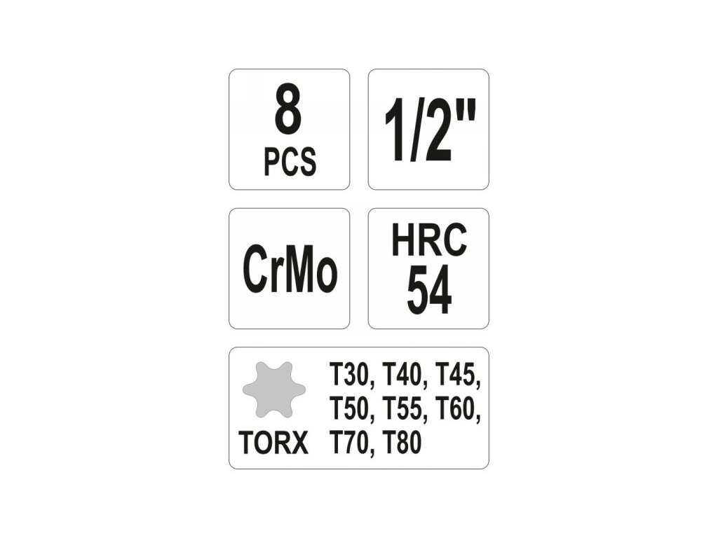 Sada nadstavcov 1/2” rázové 8 ks T30-T80 TORX CrMo
