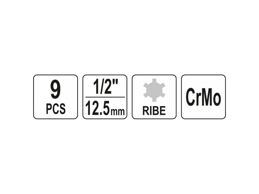 YATO Machine sada nástrčných kľúčov s dlhými bitmi 9 kusov Ribe 1/2 RM5-RM14 CrMo