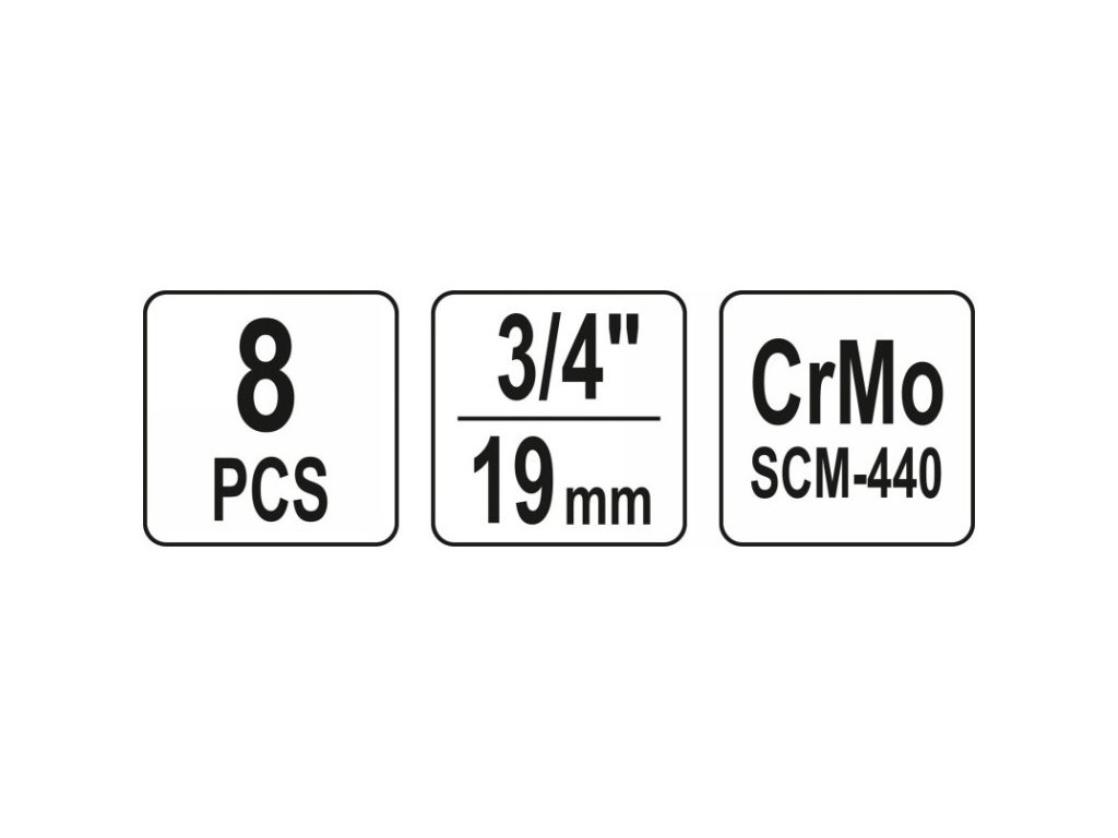YATO Kovaná sada dlhých nástrčných hlavíc 8 kusov 3/4" 22-41 mm CrMo