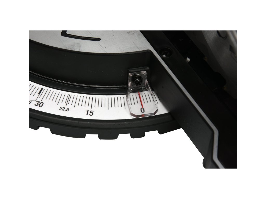- hosszirányú vágási szög: lehetőség van a fej +/- 45 fokos elforgatására. A fej szögének beállításának megkönnyítése érdekében a dőlésszög rendelkezik egy skálával, amely könnyűvé teszi a fej beállítását a leggyakoribb szögekben (0; 15; 22.5; 31.6; 45 fok)