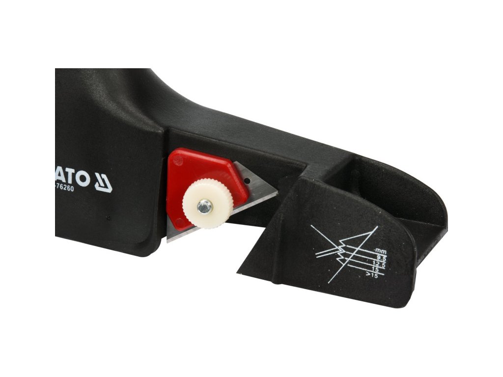 Könnyű gyalu, két pengével, gipszkarton élek megmunkálására tervezve. A gyalu teste ABS műanyagból készült, a pengék S2 acélból. 9,5 és 15 mm vastagságú lapok éleinek élezésére tervezték.