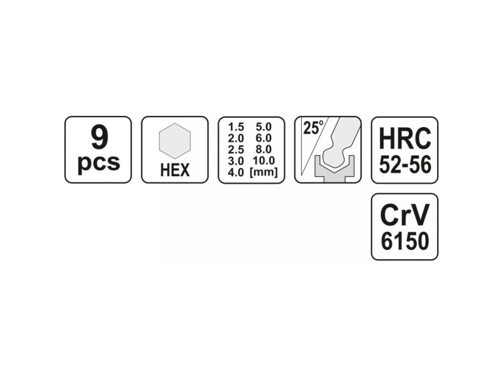 YATO Súprava imbusových kľúčov s guľovou hlavou 9 dielov 1,5-10 mm CrV