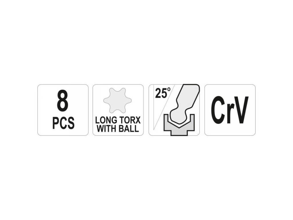 Sada guľových kľúčov Torx 8 kusov T9-T40 CrV YATO