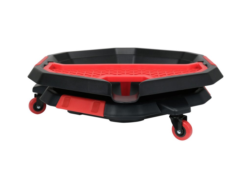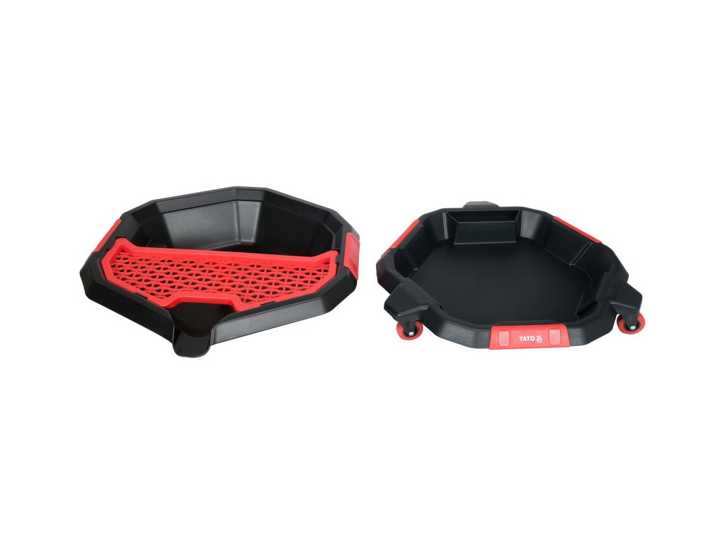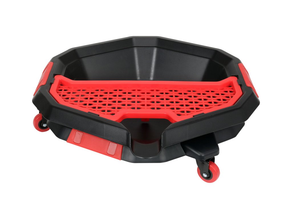 Nádoba na zachytávanie oleja s prídavným zásobníkom na príslušenstvo a náradie Tri kolieska umožňujú rýchle nastavenie polohy misky Materiál: PP Objem: 8. Počet koliesok: 3.