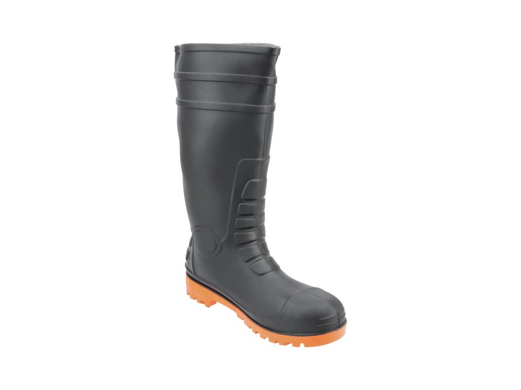 PORTLAND S5 sorozatú munkavédelmi gumicsizmák ütésálló acél orrmerevítővel és átszúrásvédő betéttel, melyek megbízható védelmet nyújtanak a lábnak. A csizma kialakítása és anyagai garantálják a vízállóságot.