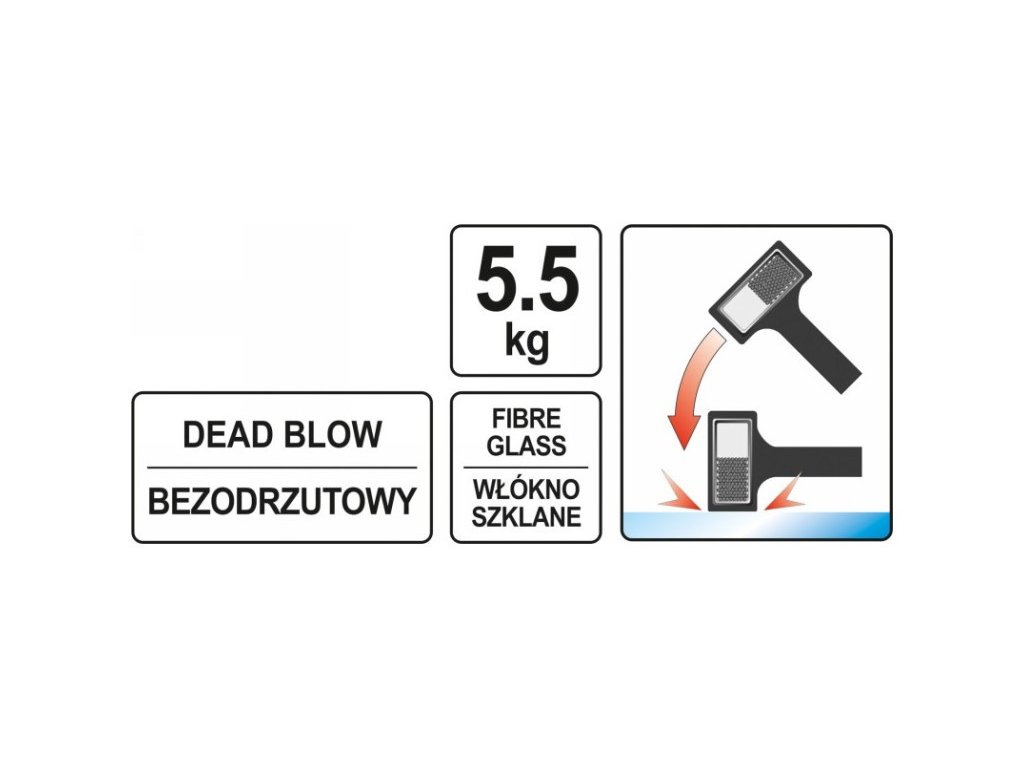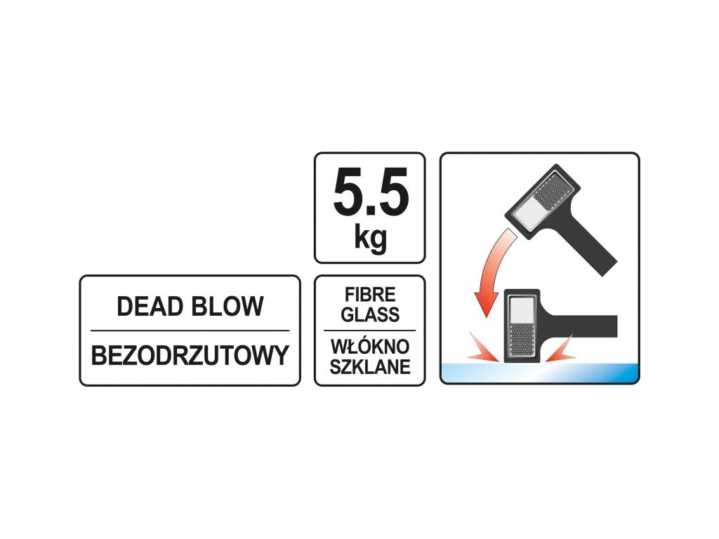 5,5 kg-os nehéz SHARPless kalapács - különleges kialakítással, amely csillapítja és minimalizálja az ütés során keletkezett visszarúgást.