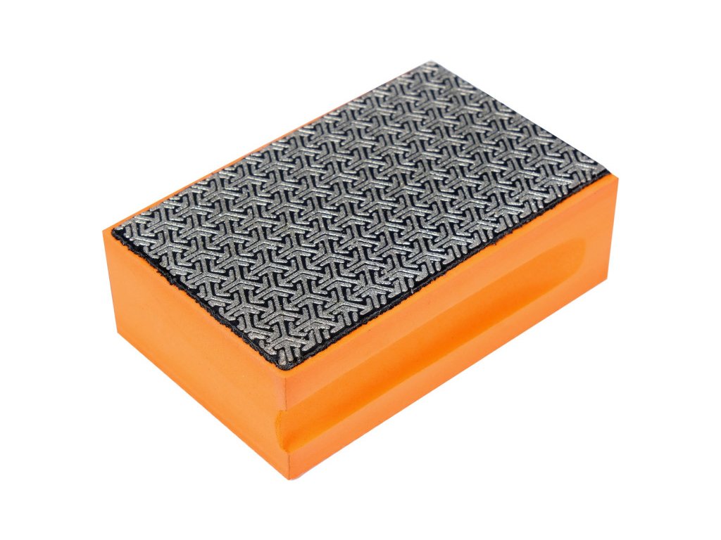Rugalmas gumi kocka (szivacs), amely üveg, márvány, gránit és kerámia csiszolására lett tervezve. G-100 gyémánttal kirakott fémlemez ragasztva a munkafelületre.