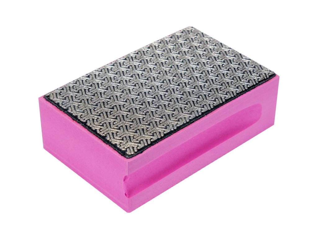 Rugalmas gumi kocka (szivacs), amely üveg, márvány, gránit és kerámia csiszolására szolgál. A munkafelületen ragasztott G-60 gyémántba ágyazott fémlemez.
