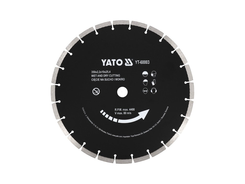 Diamantový rezný kotúč 350 x 3,4 x 10,0 x 25,4 mm segmentovaný YATO
