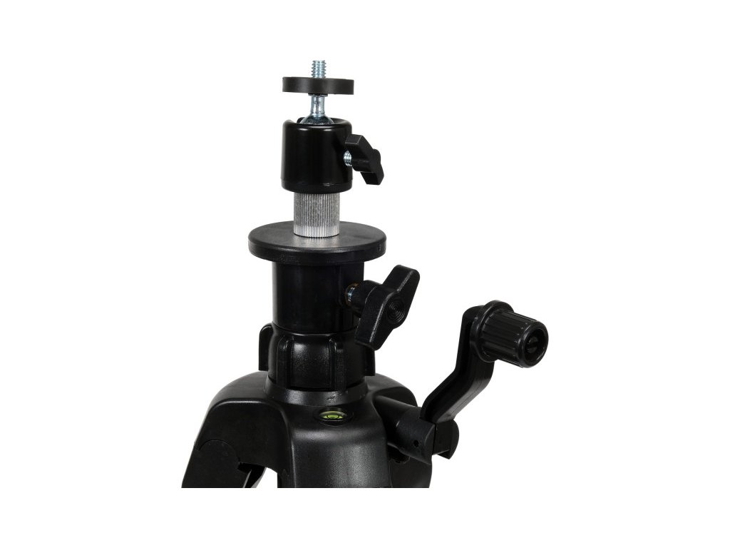 Professzionális alumínium háromláb (tripod) optikai és mérőeszközök, mint például építőipari lézerek, lézer szintezők, távolságmérők, valamint kamerák és más műszerek stabil rögzítéséhez, 5/8" vagy 1/4" menetes csatlakozással. Az alkatrészek tökéletes illeszkedése és a magas precizitású kivitelezés garantálja, hogy a háromláb gyorsan és könnyedén kihajtható. Az excentrikus lábak növelik a stabilitást, különösen a lapos és kemény talajon. A csomag tartalmazza a berendezések szögben történő rögzítéséhez szükséges adaptert, valamint egy gyors csatlakozású adaptert okostelefonhoz.