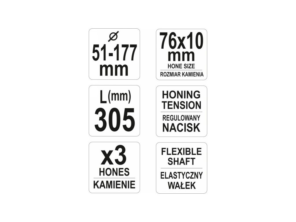 • pasuje do vŕtačky • flexibilný hriadeľ • nastaviteľný prítlak • celková dĺžka: 305 mm • priemer: 51-177 mm • veľkosť čeľustí: 76x10 mm • počet čeľustí: 3 ks • vymeniteľné čeľuste: YT-05817