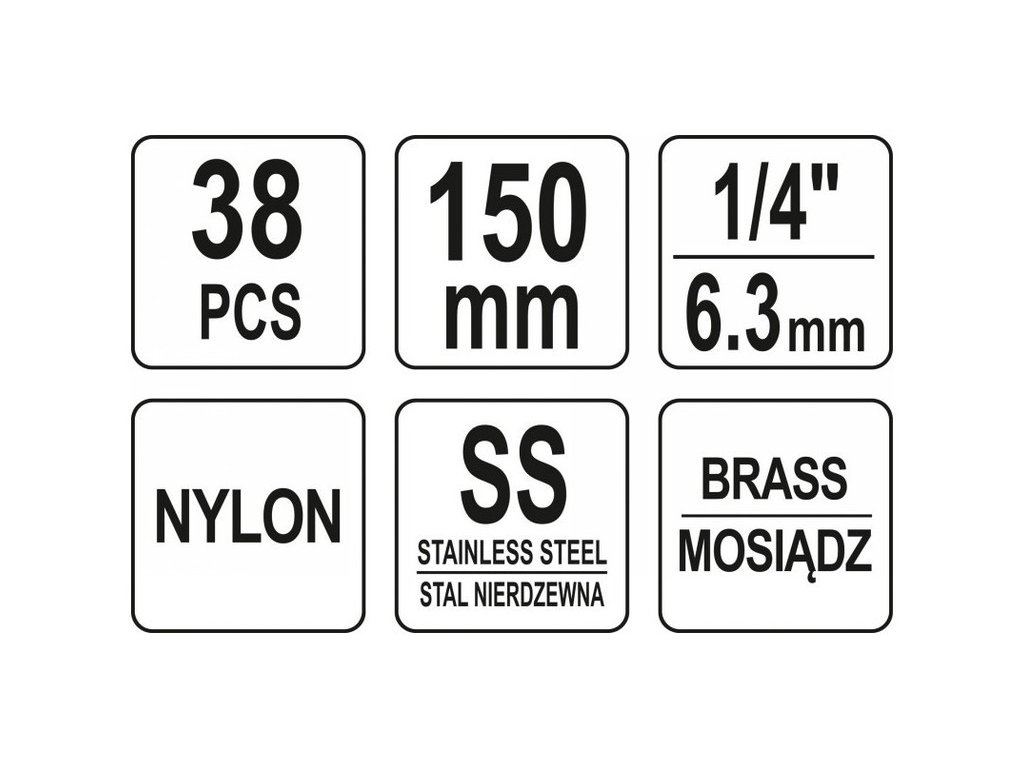 - a készlet tartalmaz 1/4" nyelű keféket, 150 mm hosszú elektromos szerszámhoz való hosszabbítót és gyorskioldó nyelét