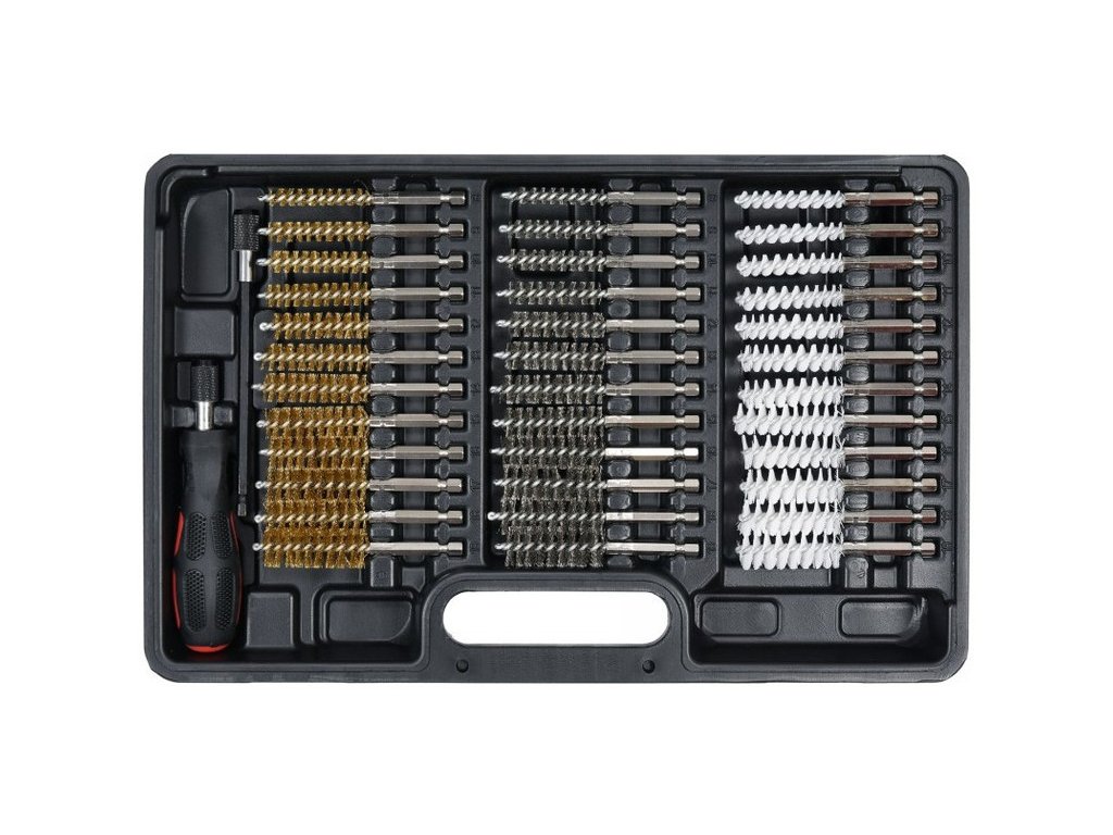 38 darabos kefekészlet, amelyet a furatokból, csövekből, injektorfoglalatokból, gyújtógyertyákból stb. származó szennyeződések és forgácsok eltávolítására terveztek.
