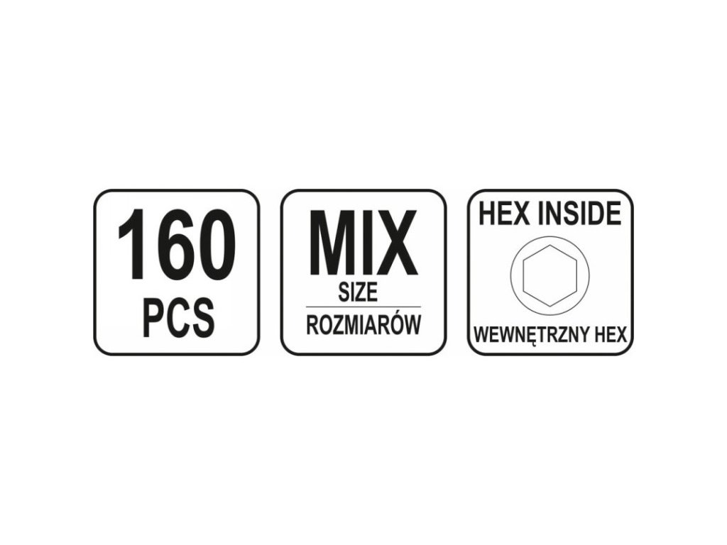Sada bezhlavých, imbusových skrutiek 160 ks