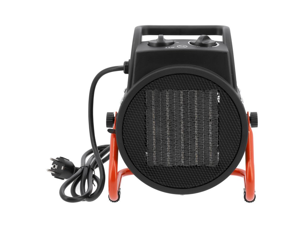 Hordozható PTC elektromos fűtőtest fémházban. Szobák, műhelyek, csarnokok fűtésére és száradásra használják felújítási és építési munkák során. A felhasználó három működési módot állíthat be a készüléken: ventilátoros működés a fűtőtest nélkül, fél teljesítményű fűtés és teljes teljesítményű fűtés. A burkolat porbevonattal van ellátva, amely megvédi a fűtőtestet a rozsdásodástól. A fűtőtestnek dupla túlmelegedés elleni védelme van.