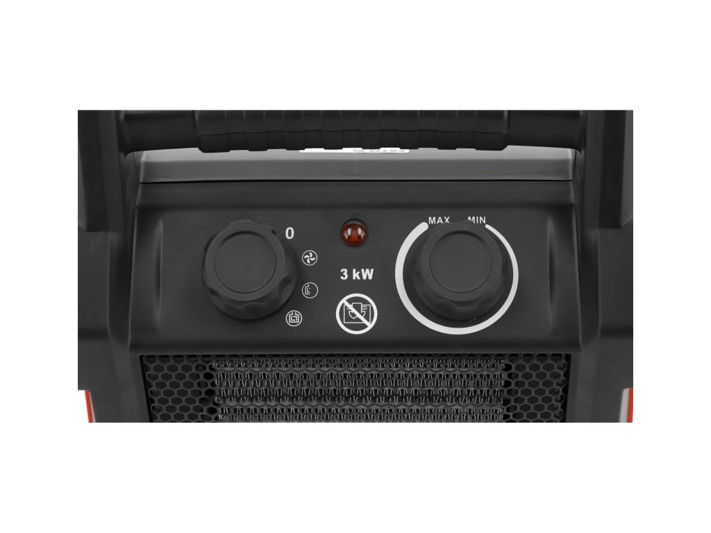 Hordozható PTC elektromos fűtőtest műanyag házban. Szobák, műhelyek, csarnokok fűtésére és felújítási, építési munkák során történő szárításra használják. A felhasználó három üzemmódot állíthat be a berendezésen: ventilátor működtetése a fűtőtest nélkül, a fűtőtest félerőteljes működése és teljes teljesítményű működése. A fűtőtestnek dupla túlmelegedés elleni védelme van és automatikusan kikapcsol, ha felborul.