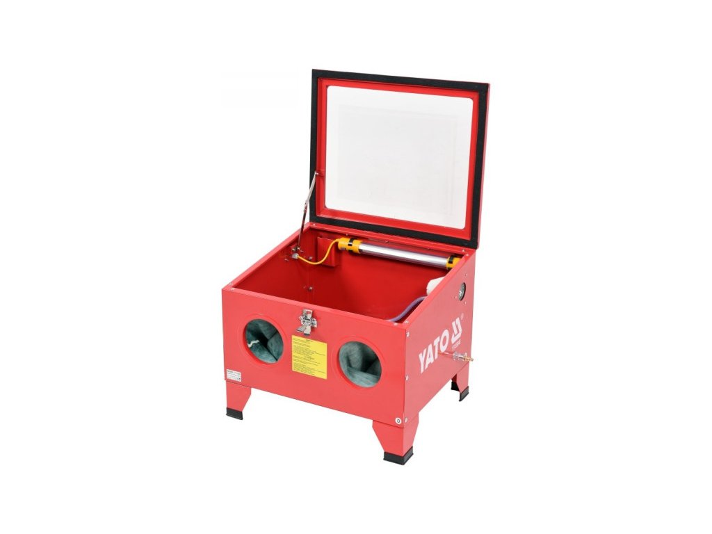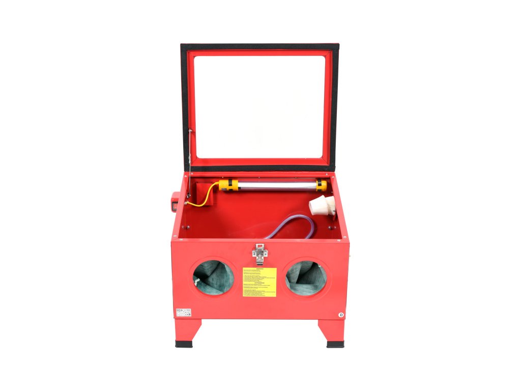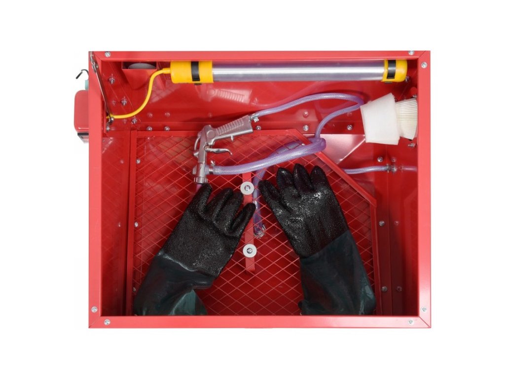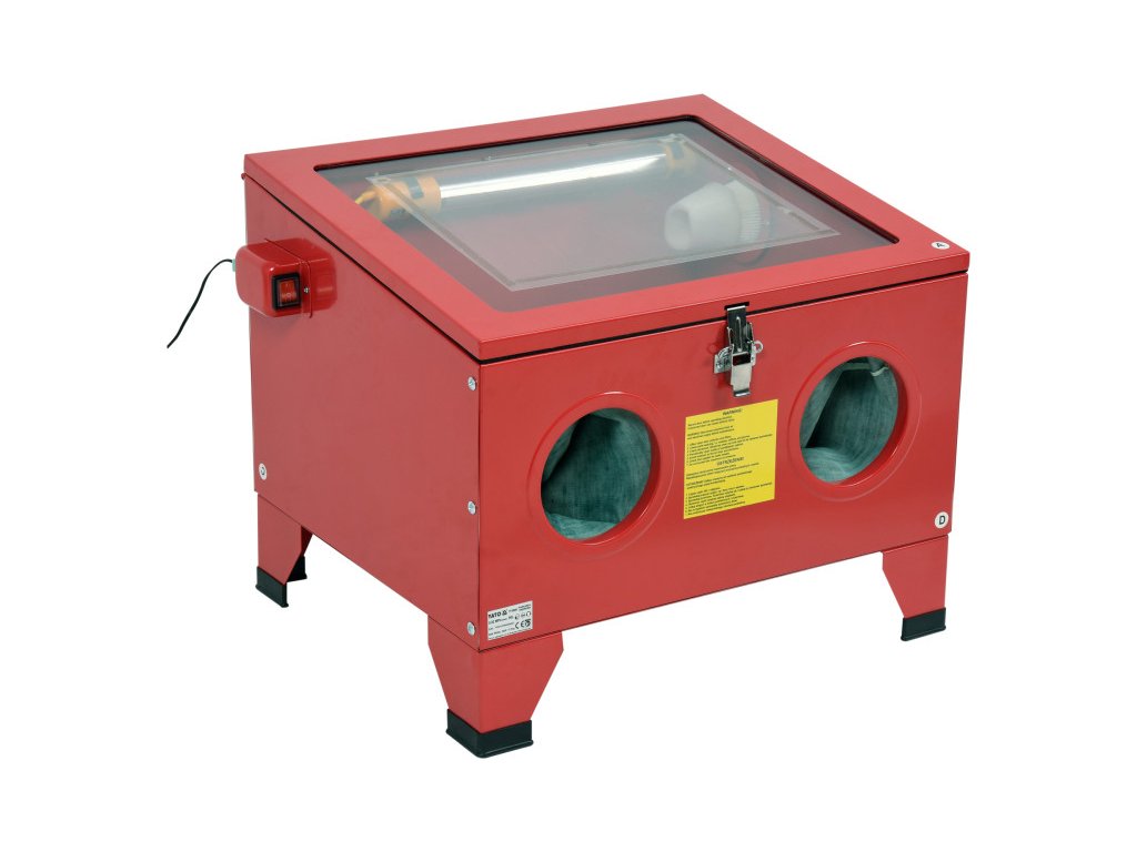 Pneumatikus homokfúvó kabin gyors és kényelmes tisztításra a rozsda, festék és szennyeződés eltávolítására forgó zárt rendszerű abrazív anyag segítségével. Elengedhetetlen az autószerelő műhelyekben és ipari üzemekben