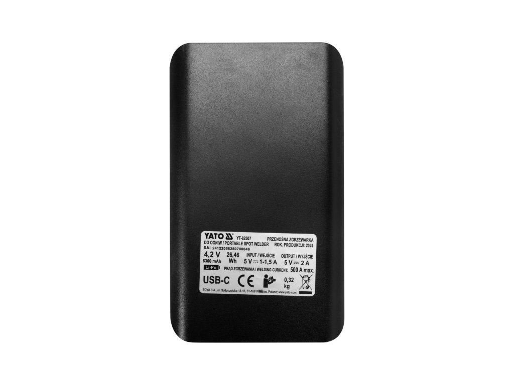 YATO Prenosná bodová zváračka 500 A 6300 mAh
