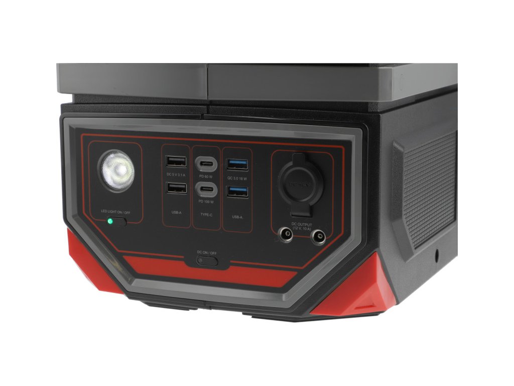 Hordozható 917 Wh-s UPS funkcióval rendelkező akkumulátoros energiaállomás. Egyszerre tizenegy eszközt támogat. A beépített kétirányú AC inverter tiszta szinusz hullámmal és 1200 W teljesítménnyel (csúcsértéken akár 2400 W-ig) rendkívül hasznos lesz vészhelyzeti energiaforrásként például a központi fűtési kazán pumpájának és vezérlőjének, a routernek, a számítógépnek, a legtöbb elektromos szerszámnak és sok más eszköznek az ellátására. Hat USB port, ebből két USB-A Q.C technológiával 18 W-ig, két USB-C PD 60 W és PD100 W technológiával, amelyek képesek az okostelefon, a tablet vagy a laptop többszöri töltésére. A 12 voltos csatlakozó sikeresen ellátja árammal a túrázó hűtőt vagy a dedikált világítást. A két jack csatlakozó 12 V-os kimenettel például az autó akkumulátorának feszültségét képes tartani, miközben az akkumulátor töltődik.