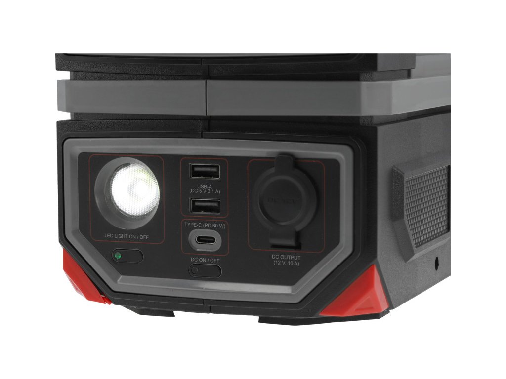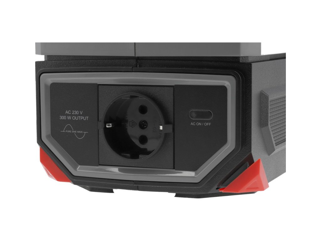 Hordozható akkumulátoros áramforrás 315 Wh kapacitással. Egyszerre öt eszközt képes támogatni. A beépített AC inverter tiszta szinusz hullámmal és 300 W névleges kimenettel (csúcson akár 600 W) hasznos vészhelyzeti áramforrás lehet többek között a központi fűtés szivattyújához és vezérlőjéhez, a routerhez, a set-top boxhoz vagy a tévéhez. Három USB port, beleértve az egyik USB-C portot PD 60 W technológiával, képes töltetni és újratölteni egy okostelefont, tablettet vagy laptopot. A 12 voltos aljzat sikeresen tápellátást biztosít egy túrázó hűtőszekrényhez vagy dedikált világításhoz.