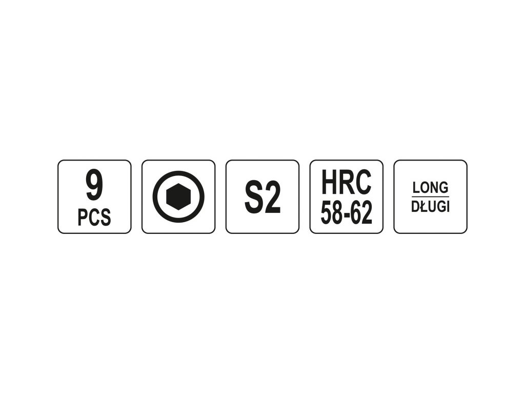 Sada vyholených imbusových kľúčov 9 kusov 1,5 - 10 mm S2 YATO