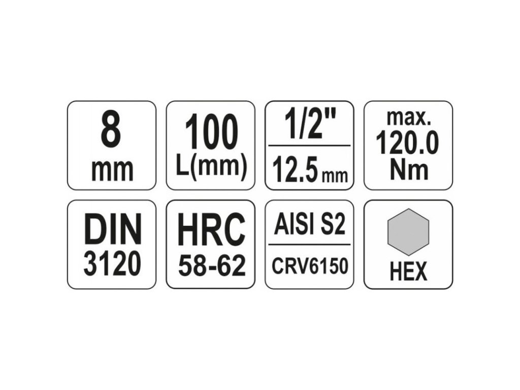 Nástrčný kľúč s dlhým bitom Imbus 1/2" 8 mm CrV YATO