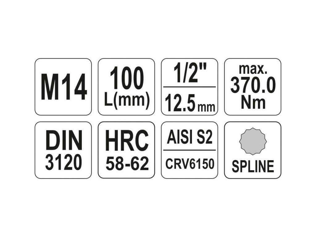YATO Dlhý nástrčný kľúč Spline 1/2 M14 CrV