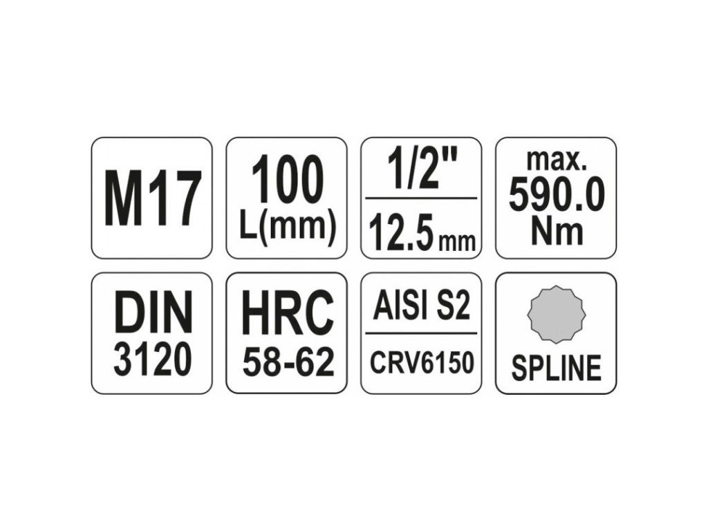 YATO Dlhý nástrčný kľúč Spline 1/2 M17 CrV