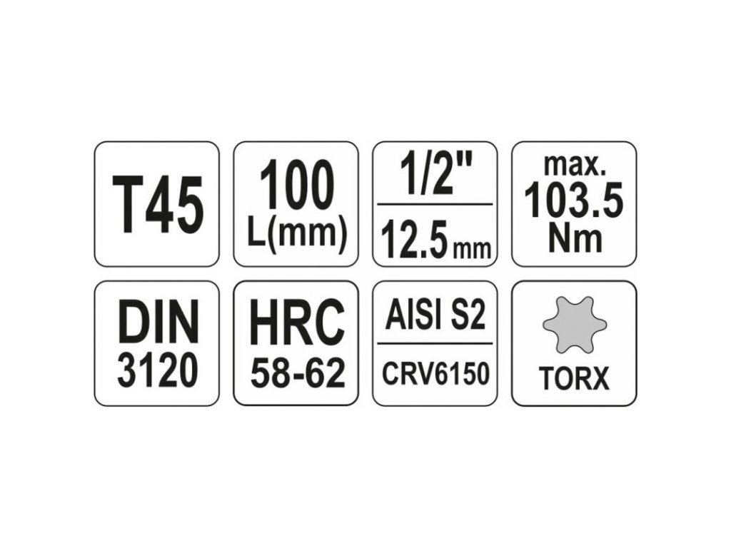 Dlhý nástrčný kľúč Torx 1/2" T45 CrV YATO