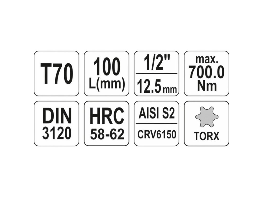 Dlhý nástrčný kľúč Torx 1/2" T70 CrV YATO