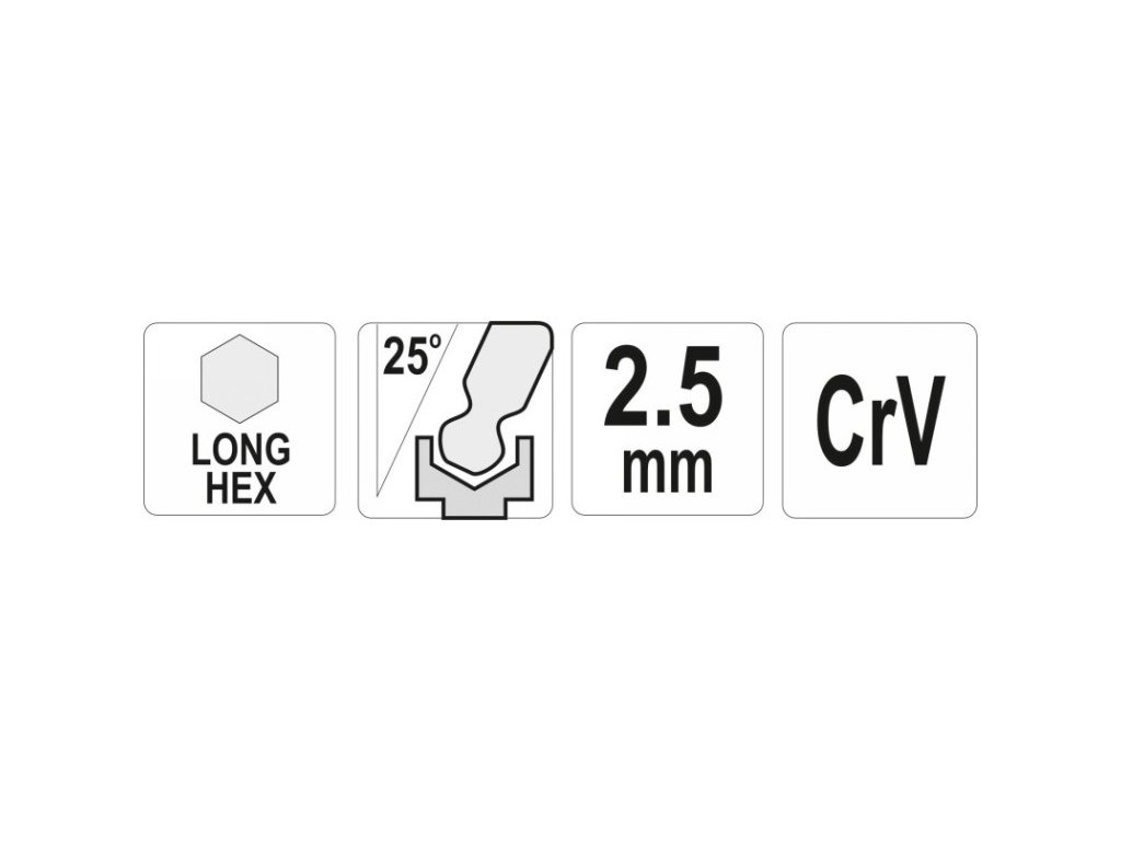 YATO dlhý guľatý imbusový kľúč 2,5 mm CrV