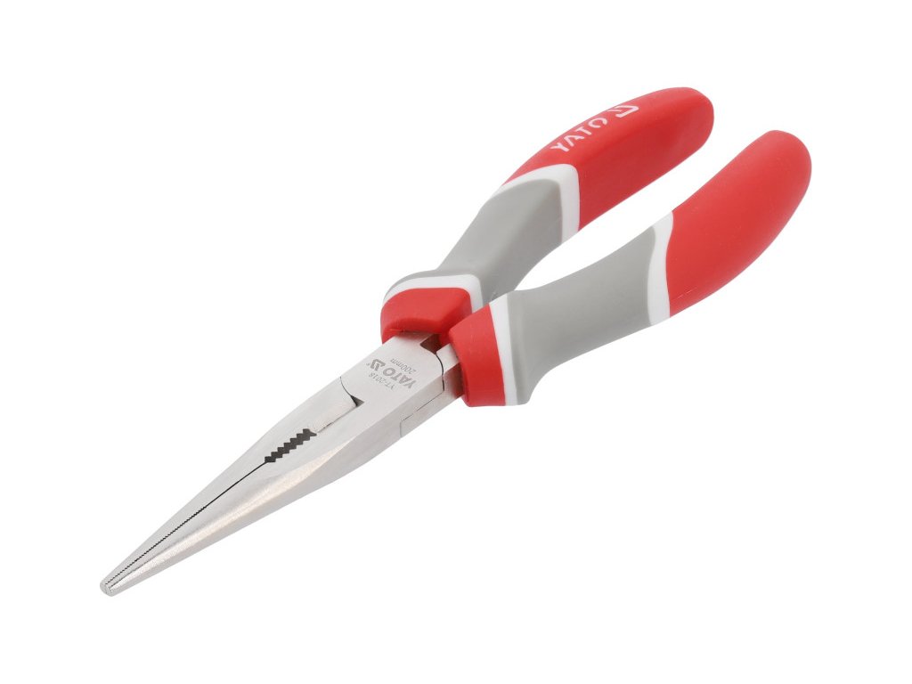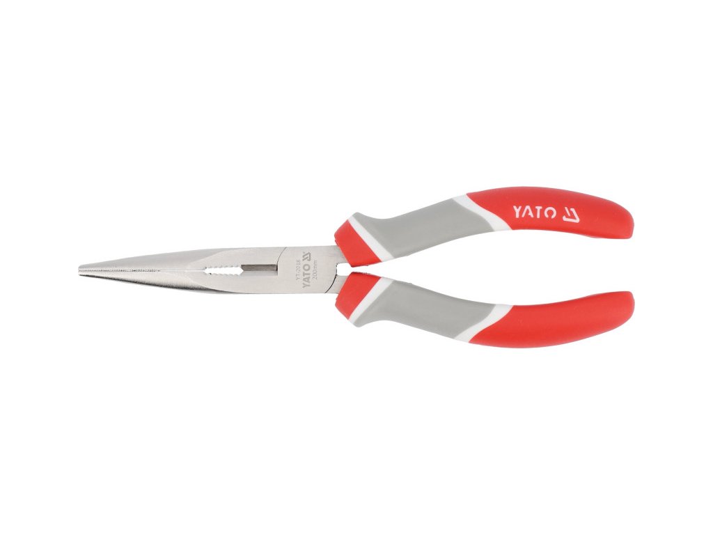 Egyenes hosszúfogó, 200 mm hosszúságban a YATO-tól. A fogókényelmes műanyag háromkomponensű betétekkel vannak bevonva.