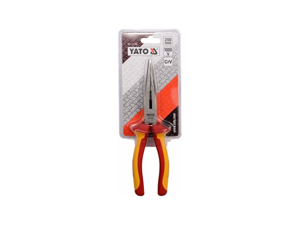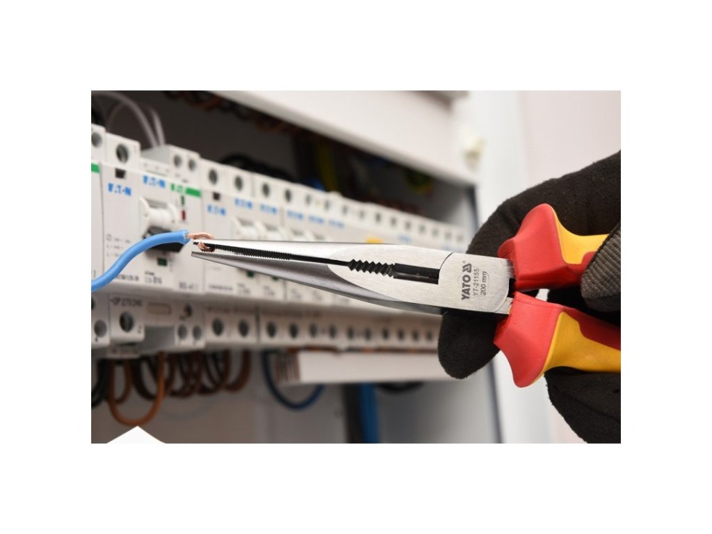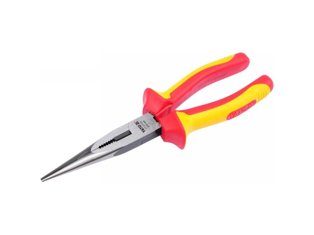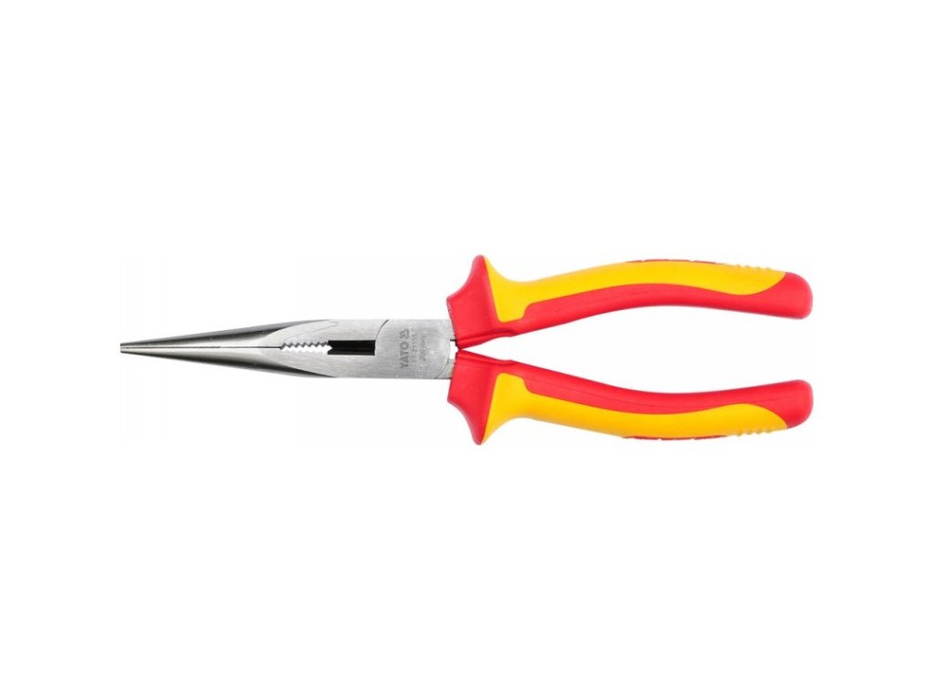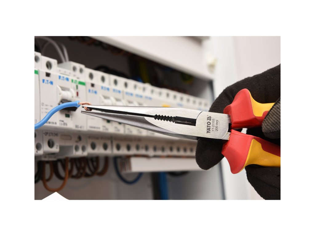 YT-21155 hosszú, egyenes fogó VDE szigeteléssel, kiváló minőségű CrV acélból készült. Félkör alakú és keskeny állkapocs profillal, nagyon pontos horonyokkal és tartós vágóelemmel.