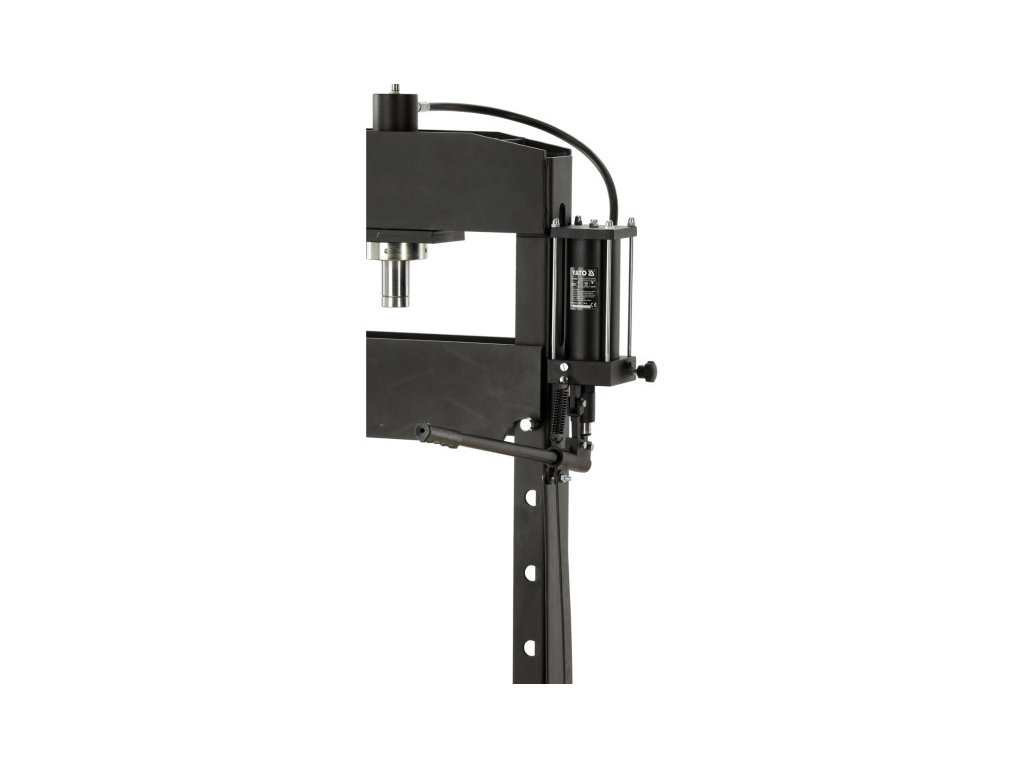 Beépített lábkapcsolóval rendelkezik, amely kényelmes vezérlést tesz lehetővé a hajtómű felett, miközben mindkét kéz szabad marad, ezáltal növelve a komfortot és a munkabiztonságot. A prés kizárólag hidraulikus módban működik, pneumatikus mechanizmusok nélkül. Stabil szerkezete hosszú élettartamot és terhelésállóságot garantál.