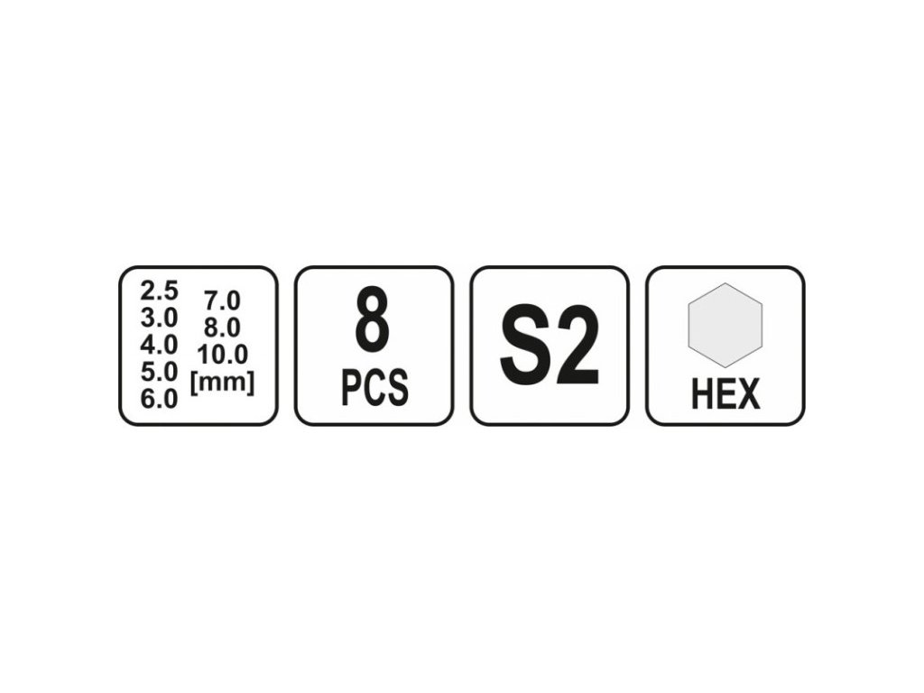 Sada imbusových kľúčov 8 kusov 2,5-10 mm S2 YATO