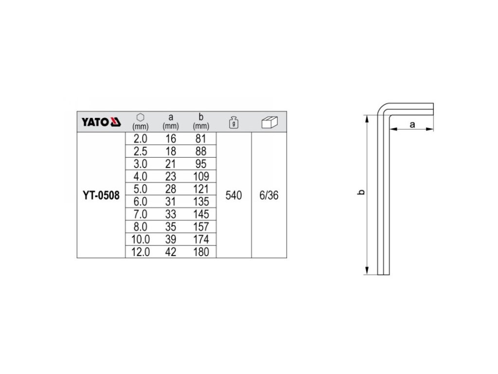 YATO súprava imbusových kľúčov 10 dielov 2,0-12 mm CrV