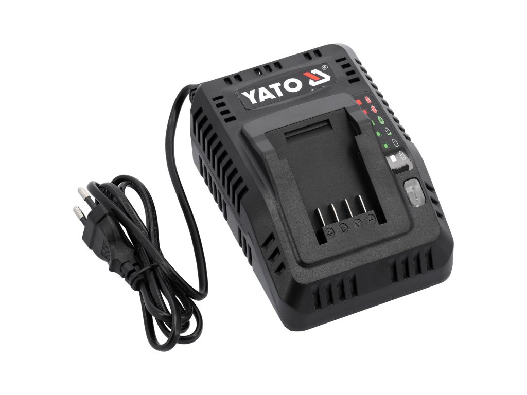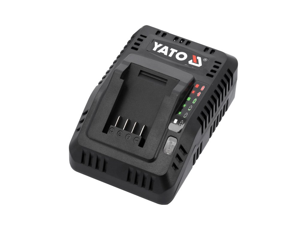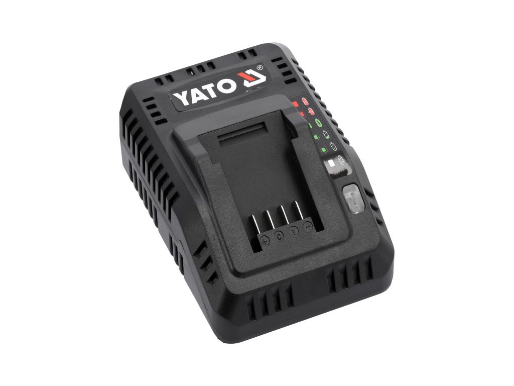 Gyors töltő minden YATO 18-voltos rendszerű akkumulátorhoz. A beépített akkumulátor teljesítmény- és hőmérséklet-ellenőrző rendszer gondoskodik az akkumulátor élettartamáról. Nem kezd töltésbe, ha az akkumulátorok túl melegek. Negatív hőmérsékleten tárolt akkumulátor esetén akkor kezd töltésbe, amikor az akkumulátor hőmérséklete eléri a +5 Celsius-fokot.