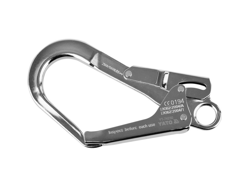 A YT-74230 automata zárral ellátott karabiner egy esés elleni védelmi rendszer része. A karabiner kötélre fűzve általában rögzítési pontként szolgál, amelyet falakba, mennyezetekbe vagy gerendákba helyeznek, például állványzatokon végzett munka esetén.