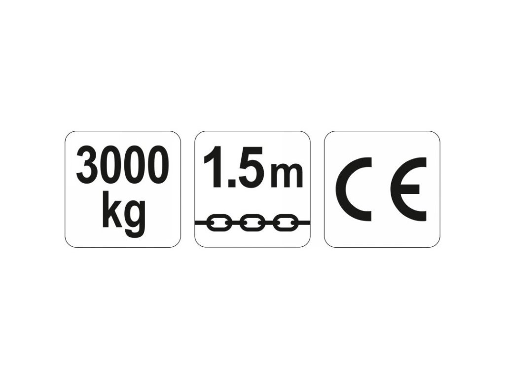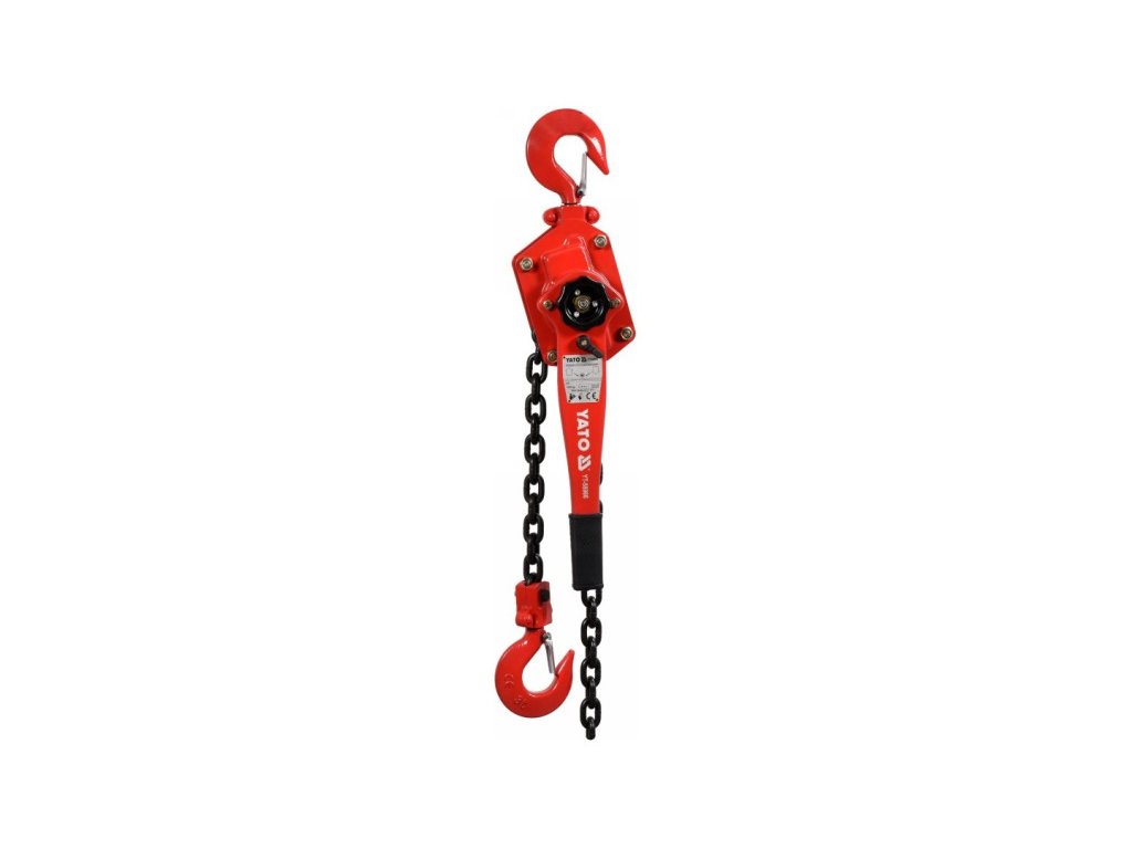 ÚJ SOROZAT YATO LÁNCOS KAROS EMELŐK A Yato láncos karos emelők ipari használatra tervezettek, gyártó cégeknél, szállító cégeknél, hajógyárakban, bányákban és raktárakban. Lehetővé teszik a nehéz terhek, szerkezeti elemek, gépek alapjainak emelését, valamint a kötelek előfeszítését és a nehéz terhek hatékony rögzítését. Az emelők speciális kialakítású horoggal vannak ellátva a munkavédelem növelése érdekében. Az emelési magasság 1500 mm. Az új emelők sorozatát kompakt, korrózióálló, ütésálló acél kialakítás jellemzi. A precíz karos mechanizmus minimalizálja az emeléshez szükséges erőt. A teljes termékcsalád karos emelőket tartalmaz 750 kg - 9 tonna emelőkapacitással... Részletes adatok a berendezés műszaki dokumentációjában találhatók. Az emelők szervizálása a garancia ideje alatt és után is biztosított. A 2000 kg-nál nagyobb emelőkapacitású kézi emelők bejelentési és helyszíni átvételi kötelezettség alá esnek a Műszaki Ellenőrzési Hivatalnál. Nehéz terhek emeléséhez, feszítéshez, beállításhoz. Kérjük, használat előtt olvassa el a kezelési útmutatót.