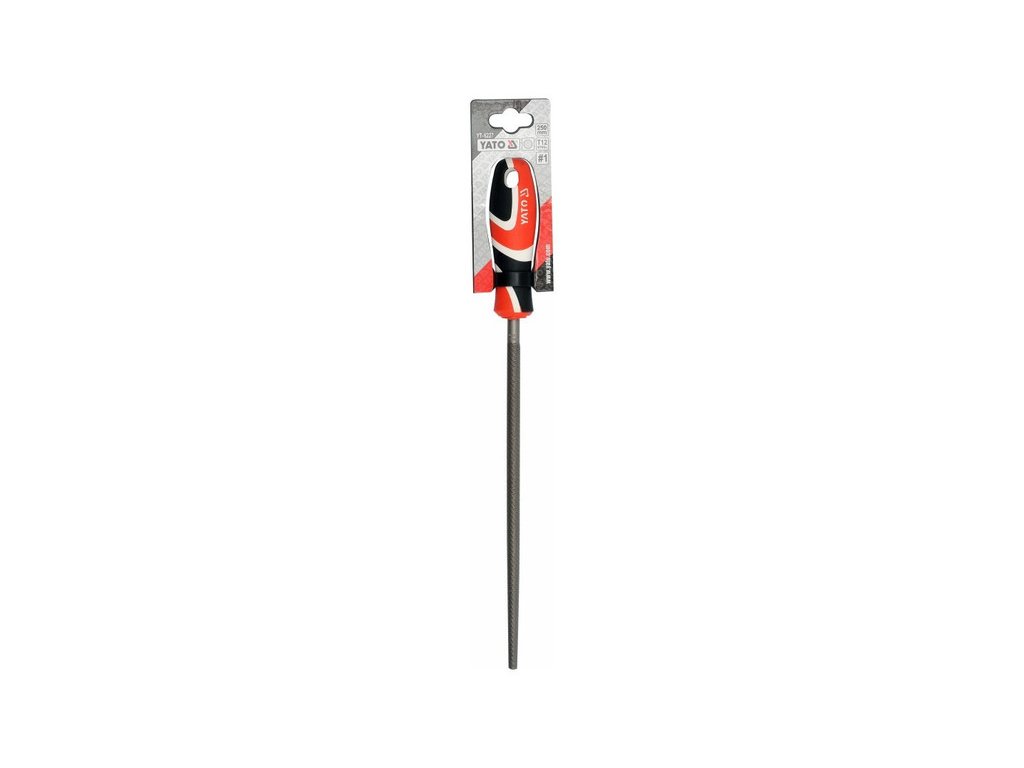 Kúpos, egyszer vágott 250 mm-es kerek fém reszelő, háromkomponensű fogóval a Yato márkától.