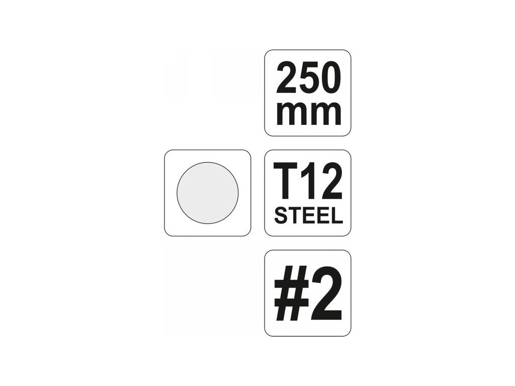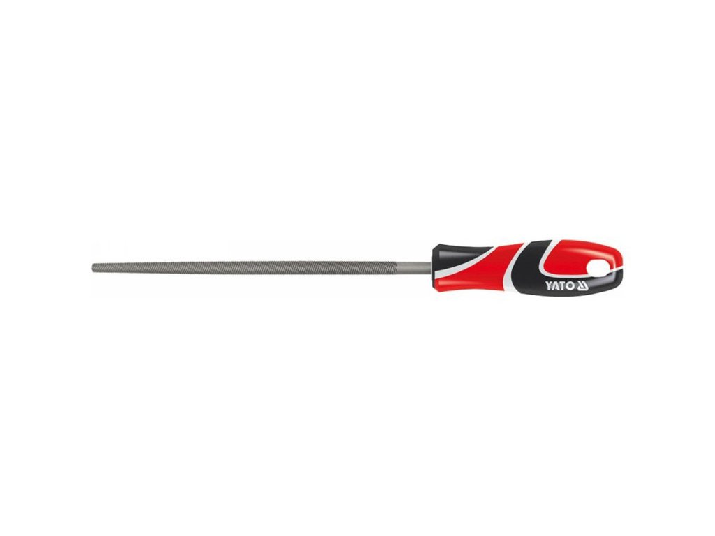 Kerek fémes reszelő, keskenyedő, kettős vágású, 250 mm, háromkomponensű nyéllel a Yato-tól.