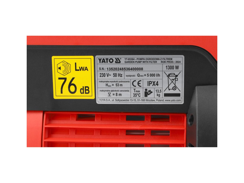 Kerti szivattyú hatékony öntözőrendszerek ellátására kertekben és vízvezeték-rendszerekben. Kerti telkeken, kempingekben, nyaralókban, melléképületekben használható. Tiszta vizet szállít kútból, esővíztartályból és medencékből. Az előszűrő könnyen eltávolítható a tisztításhoz. A gumilábak stabilitást biztosítanak a működés során és csökkentik a zajt és a rezgést. A szivattyúház és a kapcsoló vízálló. A kényelmes fogantyú megkönnyíti a szállítást. A nyomásmérő lehetővé teszi a nyomás ellenőrzését.