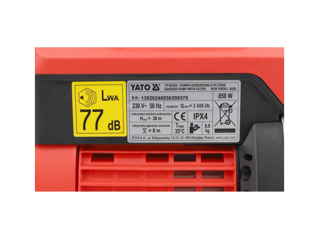 Záhradné čerpadlo YATO 850W