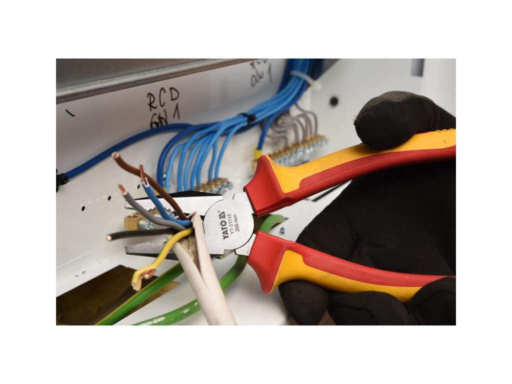 Univerzális fogó YT-21153 VDE szigeteléssel, minőségi CrV acélból készült. A szabványos alakú állkapcsok rendkívül pontos barázdákkal és tartós vágóelemmel rendelkeznek.