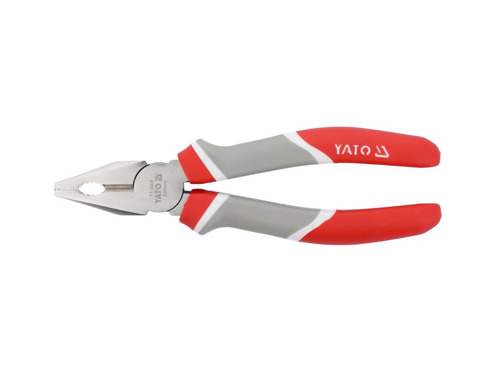 YATO univerzális fogó, 200 mm hosszúságban. Normál méretű állkapcsok, nagyon precízen készített hornyokkal és tartós vágóelemmel. A nyelvek kényelmes, műanyag háromkomponensű sapkával vannak bevonva.