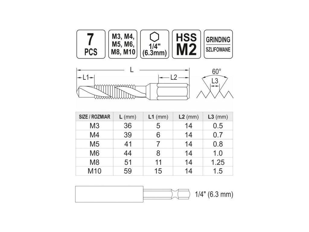 YATO Kombinovaná súprava strojových vrtákov a závitníkov so 7-dielnym držiakom bitov (M3-M4-M5-M6-M8-M10)