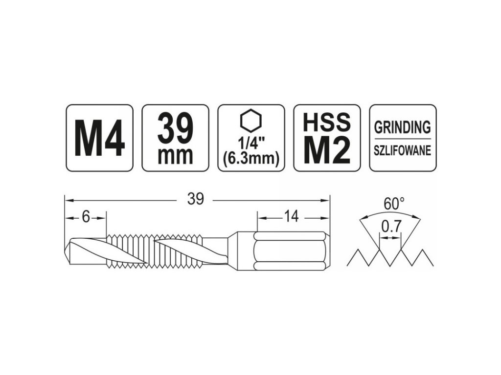 Yato YT-44841 fúró-csapkészítő. Páratlan metrikus menetek készítéséhez tervezve. Gépi és kézi menetfúráshoz használható.