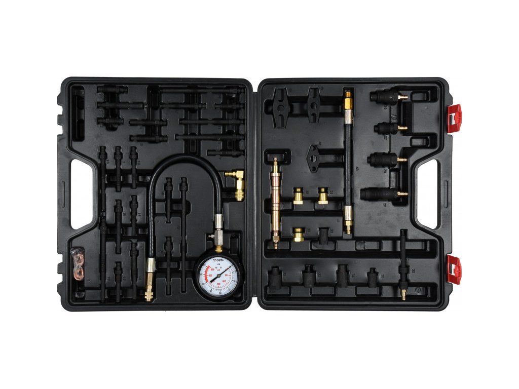 Univerzális készlet a kompressziós nyomás mérésére mind benzin-, mind dízelmotorokban. A mérést gyertyákon vagy injektorn keresztül lehet elvégezni.
